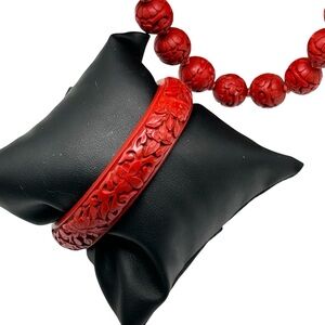 Vintage Chinese Export Genuine Cinnabar Bead Necklace Bracelet Earrings …