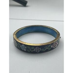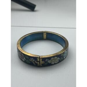Vintage Chinese Export Hinged Bangle Bracelet Floral Flowers Cloisonné