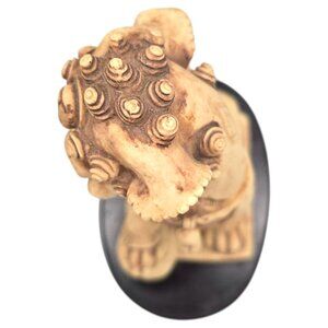 Vintage Chinese Hand Carved Resin Foo Dog Lion Statue Wood Base 5.5"