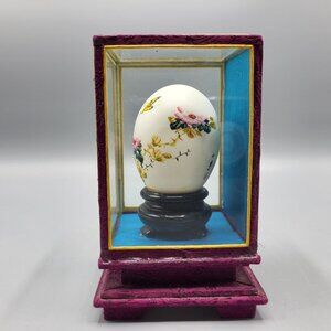 Vintage Chinese Hand Painted Decorative Egg In Display Case Floral Butterfly