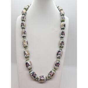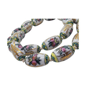 Vintage Chinese Import Porcelain Bead Necklace Hand Painted Gold Clasp Floral