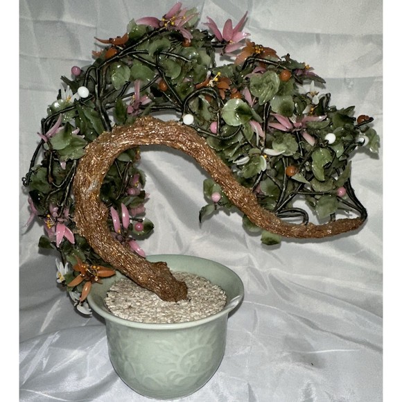 Vintage Chinese Jade Quartz Stone Glass Bonsai Tree Pink Slight damage See Pics