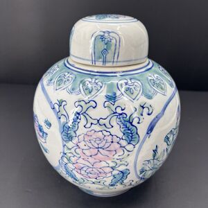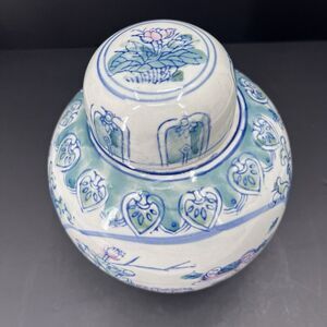 Vintage Chinese Lillies & Ducks Porcelain Lidded Ginger Jar Asian Decor