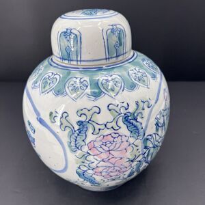 Vintage Chinese Lillies & Ducks Porcelain Lidded Ginger Jar Asian Décor