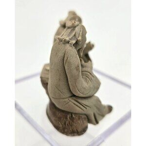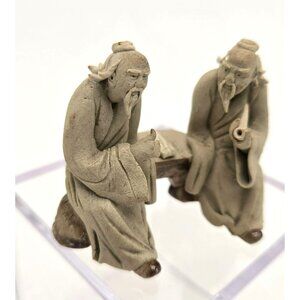 Vintage Chinese Mudman Figurine Pair Sitting on Bench Smoking Pipe je155