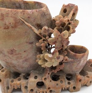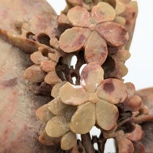 Vintage Chinese Pink Tan Soapstone Double Vase. One larger vase section and one small bud section. Light wear/chips on some of the petals (see photos)