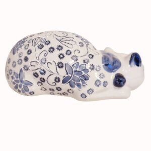 Vintage Chinese Porcelain Blue & White Floral Sleeping Cat Figurine 10-Inches