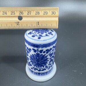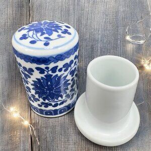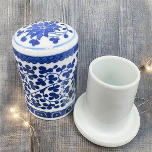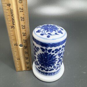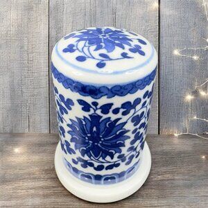 Vintage Chinese Porcelain Toothpick Holder Floral Blue White Pattern Decorative