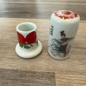Vintage Chinese Porcelain Two Piece Toothpick Holder