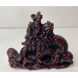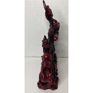 Vintage Chinese Red Resin Lucky Dragon Feng Shui Sculptured Statues Lot of 3