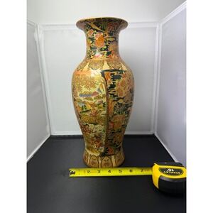 Vintage Chinese Satsuma Vase decorative 14" tall statement vase