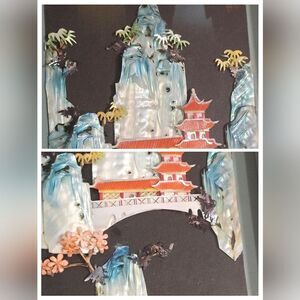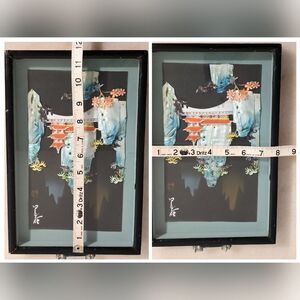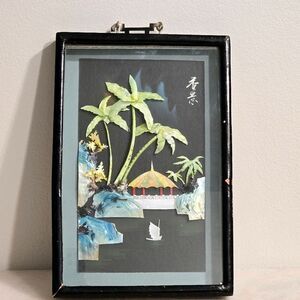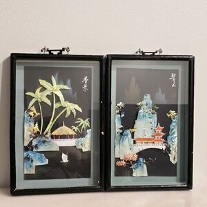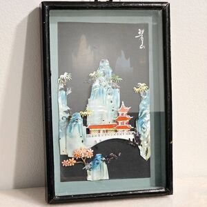 Vintage Chinese Shell Art Shadow Box Mother of Pearl Set