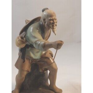 Vintage Chinese Shiwan Artistic Ceramic Mudman Fisherman Glazed Figurine 8" tall