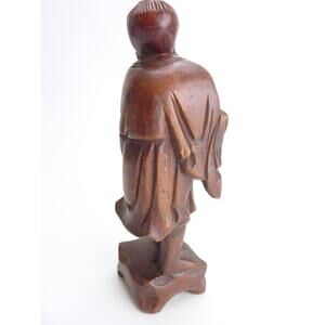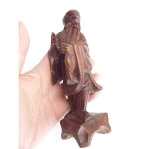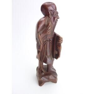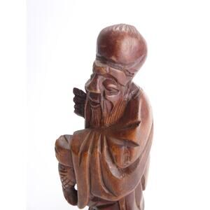 Vintage Chinese Shou Lao Fish Carved Wood Figures Statue Longevity