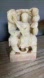 Marked China on bottom of statue. Sits approximately 8” tall and 4.25” wide. There are some chips and it looks like at one point there was a crack through the base that was repaired.