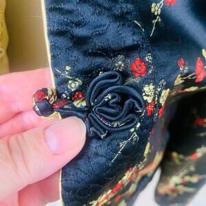 Vintage Chinese Sz L Style Gold Silky Reversible Jacket Floral Embroidered Retro