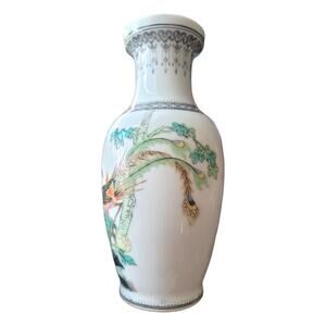 Vintage Chinese Zhongguo Jingdezhen Zhi Porcelain Peacock Phoenix Vase