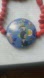 vintage Chinese carved cinnabar bead necklace with a cloisonné enamel pendant