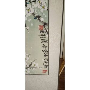 Vintage Chinese hand painted , scroll, art, decor trees, floral. Blossom. Large