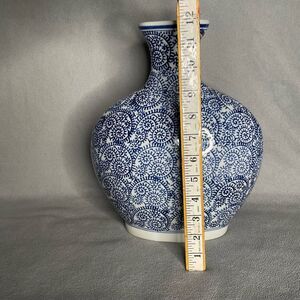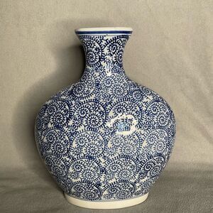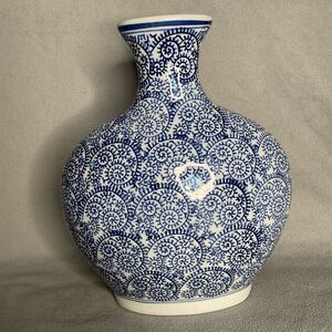 Vintage Chinoiserie Bud Flower Vase - Cobalt Blue & White, Ivy Pattern 12"