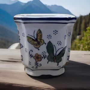 Vintage Chinoiserie Floral Butterflies Ceramic Hand Painted 4" Indoor Planter