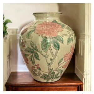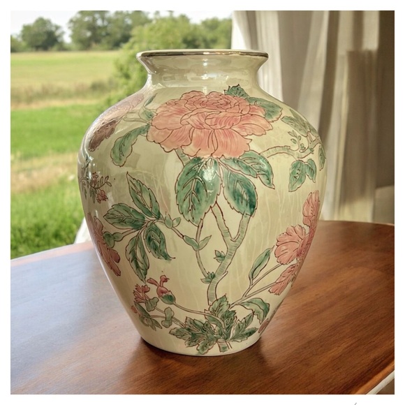Vintage Chinoiserie Vase Famille Rose Style MCM Cottagecore Romantic Pink Floral