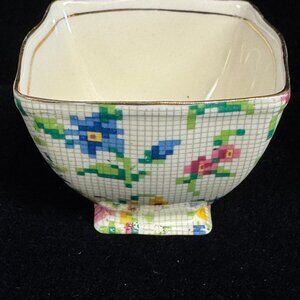 The Vintage Chintz Royal Winton Queen Anne Creamer and Open Sugar bowl tea set is a charming addition to any tea lover's collection. Made of porcelain with a chintz production style, this multicolor set features a Queen Anne style design in a square shape. The backstamp indicates it was produced in Australia, showcasing the craftsmanship of Royal Winton. Perfect for serving cream and sugar in a decorative and unique way.