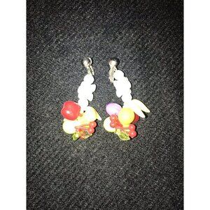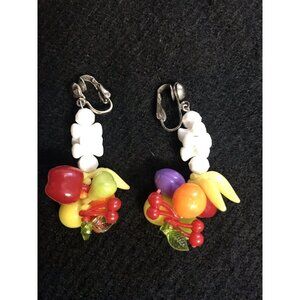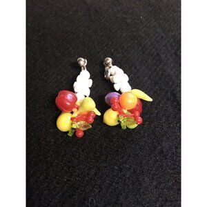 Vintage Chiquita Banana Fruit Salad Clip On Earrings Retro Plastic 2in Dangle