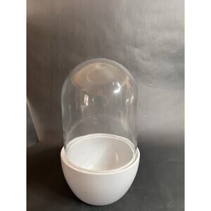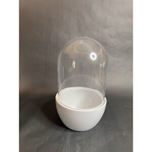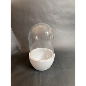 glass terrarium, chive planter, pill shape vase, capsule planter, rare glass jar, modernist decor, space age style, white glass vase, succulent holder, moss terrarium, vintage planter, minimalist jar, retro home decor