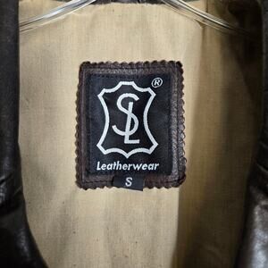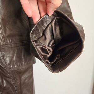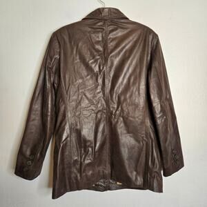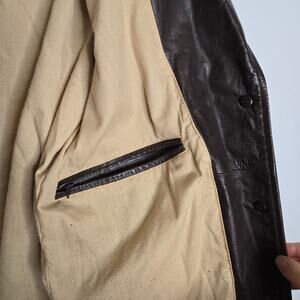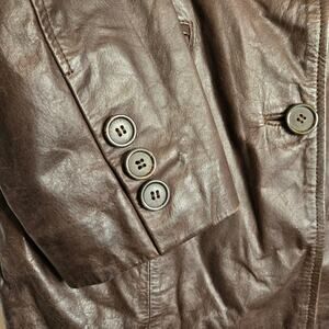 Vintage Chocolate Brown Leather Jacket Notched Lapel Button Front Coat S Classic