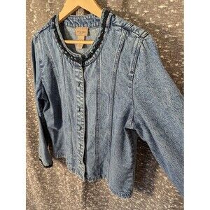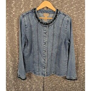 Vintage Choices Western Beaded Denim Jacket Women's Petite M Turquoise Stone
