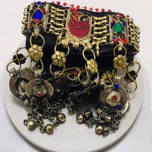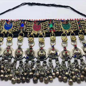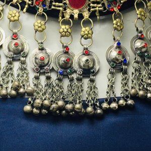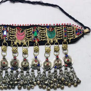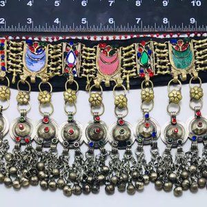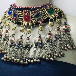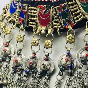 • Each part of this antique choker necklace is extremely beautifully crafted and makes it an exceptional piece. This choker necklace is one of a kind and a unique piece. The finest quality of material is used while crafting this necklace. This Afghani choker necklace ties from the back with a fabric tie and fits all sizes. You can adjust this necklace according to your desire.