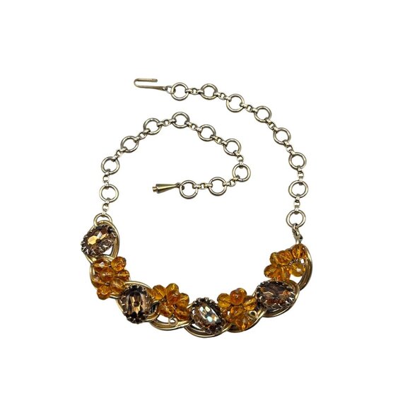 Tags: Vintage Necklace, Choker Necklace, Topaz Rhinestones, Bead Clusters, Hand Wired, Gold Tone, costume jewelry, statement necklace, vintage jewelry, romantic gift, gift for wife