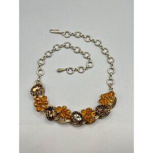Vintage Choker Necklace Topaz Rhinestones Bead Clusters Hand Wired Gold Tone