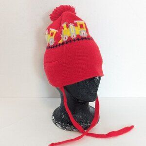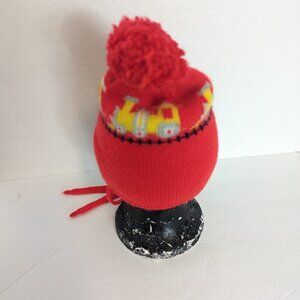Vintage, no brand name, Choo Choo Train Knit Hat Pom Pom in Red