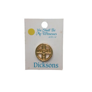 Gold tone lapel pin with circle and cross design. Includes Acts 1:8 scripture. Approx. ½". Great for hats, caps, scarves, or backpacks.