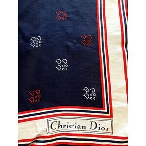 Vintage Christian DIOR Printed Silk Scarf Navy Blue, Red Cream White OLD MONEY