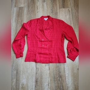 Vintage Christian Dior 100% Silk Red Double Breasted Blazer Blouse Women's 10 P.