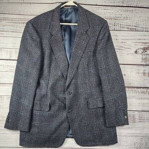 Vintage Christian Dior 44R Blue Plaid Wool Tweed Blazer Jacket USA Made RARE