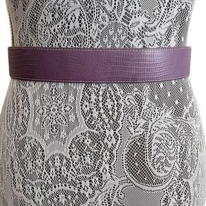 Very Stunning Vintage Christian Dior Belt featuring a long silver rectangle buckle. Color is an on trend subdued shade of purple/lilac. Textured exterior throughout with stitching on edges as seen in the photos. Please note, it appears to be composed of leather, although it is not stamped. Marked a size small/medium. Approximate measurements lying flat from end to end: 35.75” length & 1.5” wide. In very good preloved condition with minimal normal wear. Bundle to maximize shipping!