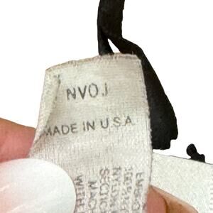 I can’t read the size on the tag, I would guess it would fit B,C cup size, 34/36. It’s a good medium size bra. Good condition, some loose threads in center piece on chest.