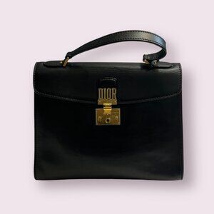 Vintage Christian Dior Black Leather Top Handle Bag – Lock & Key, Made in France