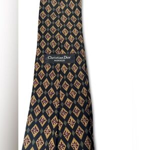 Vintage Christian Dior black and gold patterned tie.