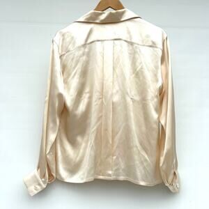 Vintage Christian Dior Cream Ecru Satin Silk Double Breasted Blouse 40 Jacket