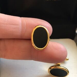 Oval gold plated cufflinks with black center. Marked “Christian Dior”.