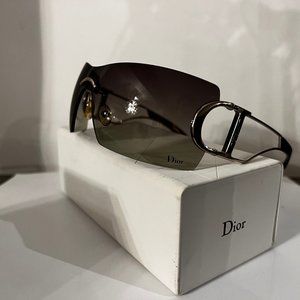 Authentic Vintage Christian Dior Diorly 2 Rimless Shield Mask Oversized Designer Sunglasses from early 2000's 00sY2K designed by John Galliano