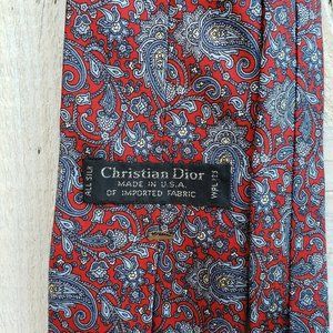 Vintage Christian Dior silk tie in lovely blue, red and white paisley and floral pattern. Made in USA from 100% imported silk.