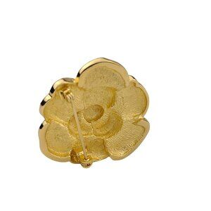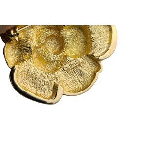Vintage Christian Dior Flower Gold-Tone Rhinestone Brooch/Pin 1.52"x1.56"