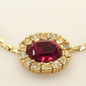 Vintage Christian Dior Gold and Red Gemstone Necklace