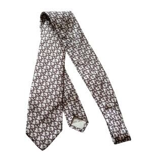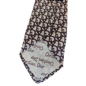 Vintage Christian Dior Logo Brown and Cream Necktiie